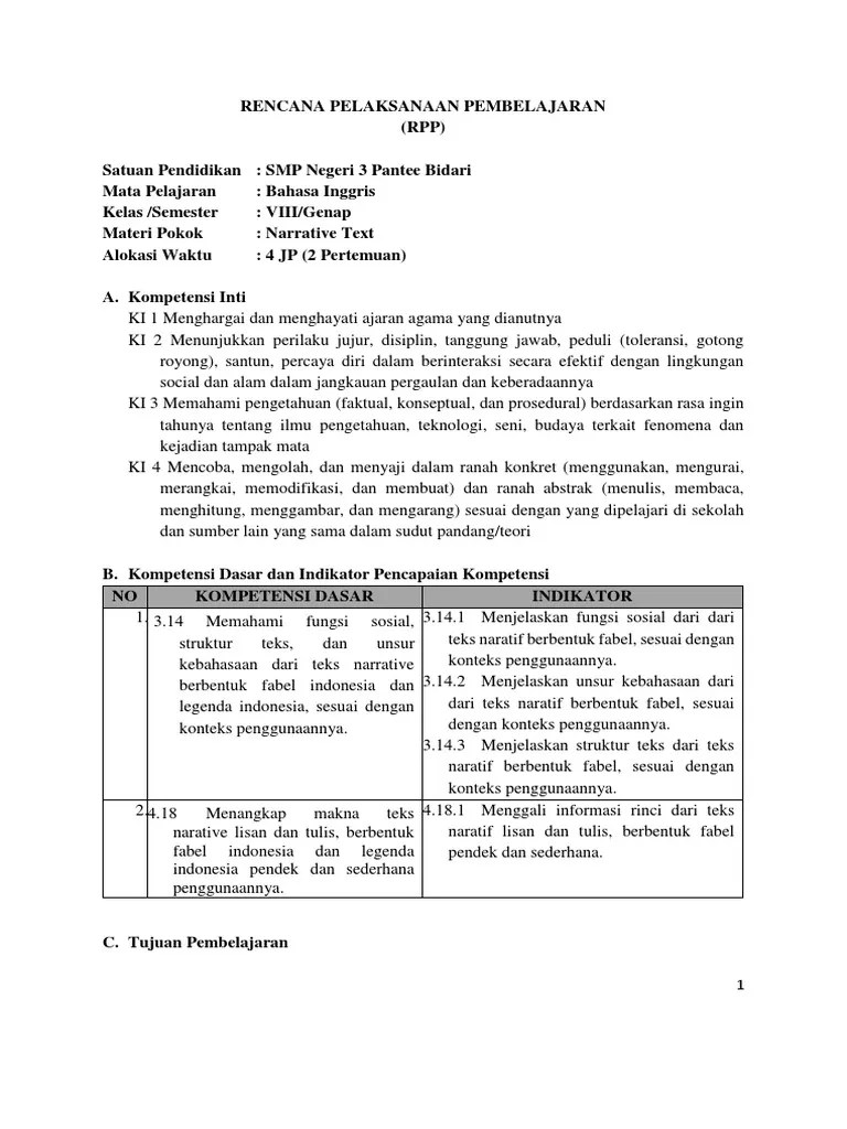 Rpp bahasa inggris smp kelas 8 kurikulum 2013 revisi 2017.